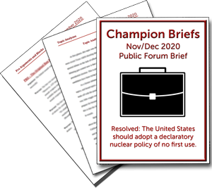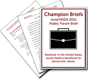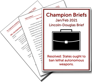 Champion Briefs is a trusted debate resource provider. We help students become Champions –individuals who excel at critical thinking, public speaking, performance, and argumentation while positively contributing to the community.