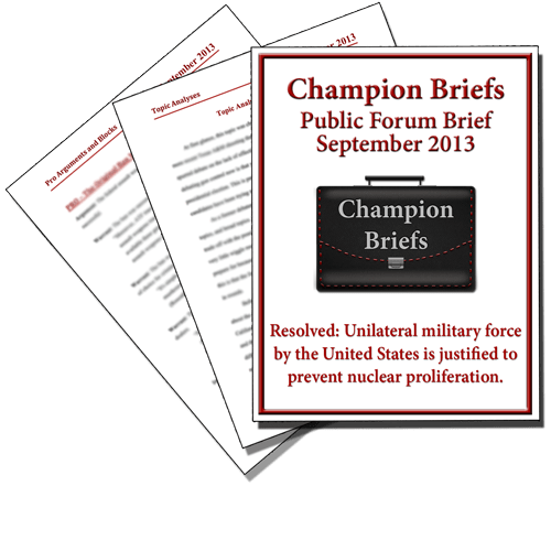 Here are our recent files for Public Forum and Lincoln-Douglas Debate. All briefs we've published over 13+ years are available in the Archive.
