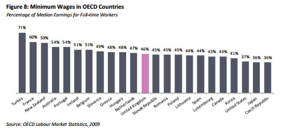 While that wage is low enough to avoid tripping up job numbers, its also high enough to meaningfully decrease poverty rates. The United Kingdom, who annually recalibrates their national minimum wage based on a formula similar to the one cited above, empirically demonstrates that post-industrial, Western countries can prosper with a minimum wage. Because Britain changes their minimum wage annually, they also have more data to analyze than the US, since the US changes its minimum wage sporadically. That increased data provides an important empirical insight that can be used to make conclusions about the US35: