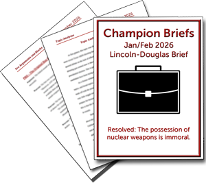 As educators, we believe it is important to help students learn argumentation, research, and critical thinking skills fostered by debate. Our briefs are designed to facilitate real learning, helping students to not only succeed in their debate rounds, but build a foundation of expertise that will benefit them for a lifetime.