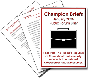 Champion Briefs is a trusted debate resource provider. We help students become Champions –individuals who excel at critical thinking, public speaking, performance, and argumentation while positively contributing to the community.