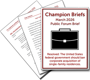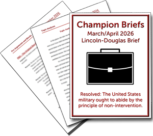 Champion Briefs is a trusted debate resource provider. We help students become Champions –individuals who excel at critical thinking, public speaking, performance, and argumentation while positively contributing to the community.